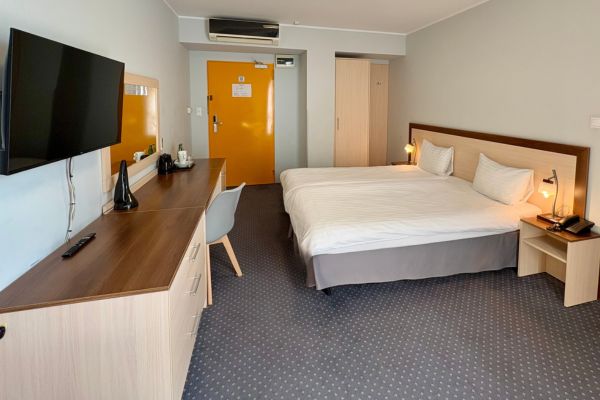 Pokój Economy – o powierzchni 20m2 dla max 2 gości; z opcją łóżka podwójnego 160×200, dwóch łóżek złączonych 90x200x2, co daje 180×200 lub 2 łóżek oddzielnych. Pokój wyposażony w biurko, szafę/ garderobę, klimatyzację, zestaw do prasowania, TV z telewizją kablową, czajnik i zestaw do parzenia kawy/ herbaty. W łazience: wanna, bezpłatne kosmetyki, ręczniki, suszarka do włosów. Część pokoi z opcją łączenia miedzy sobą.